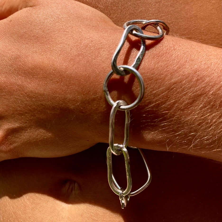 Each link is hand forged, irregular and unique, made from recycled Australian sterling silver.
